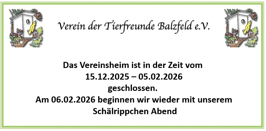 Verein der Tierfreunde Balzfeld e.V. – Eschelbacher Straße 20 – 69234 Dielheim